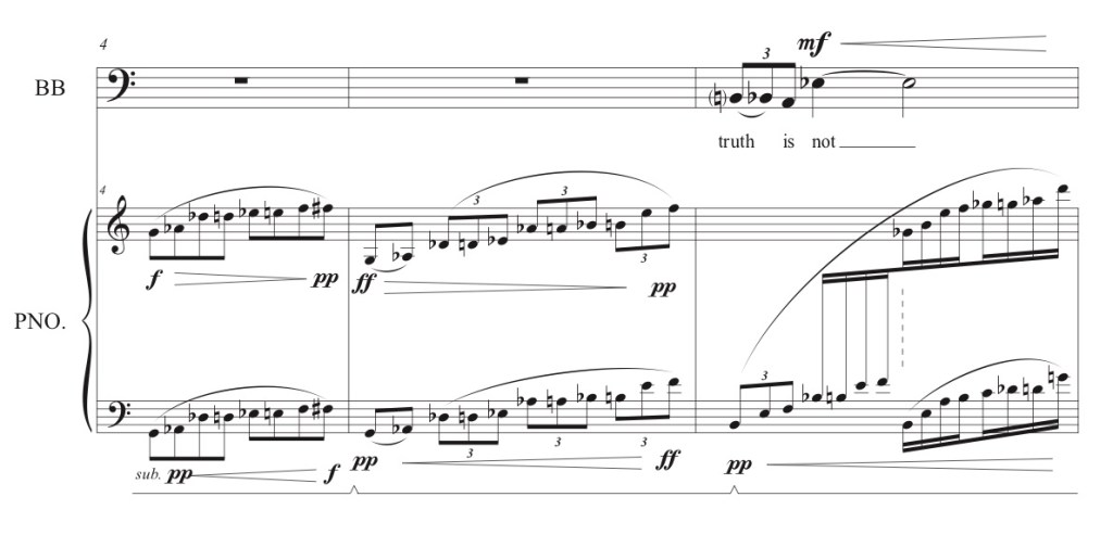 In line with the Humanities Studio 2019-20 theme of “Post/Truth,” this piece took the form of a 25-minute song cycle setting texts from the last one-hundred years of writing about the concept of “truth.” On one hand, this project was a satisfying exploration of an epistemological topic I have a lot of interest in, but on the other hand, I could not help feeling like a “fake” philosopher, or at least a musician going to a Halloween party dressed as a philosopher and refusing to take off the costume for an entire year.